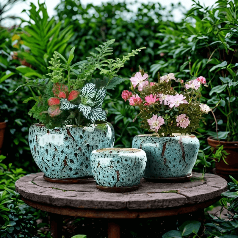 Boho kvetináčov v tyrkysová farbe 3 ks