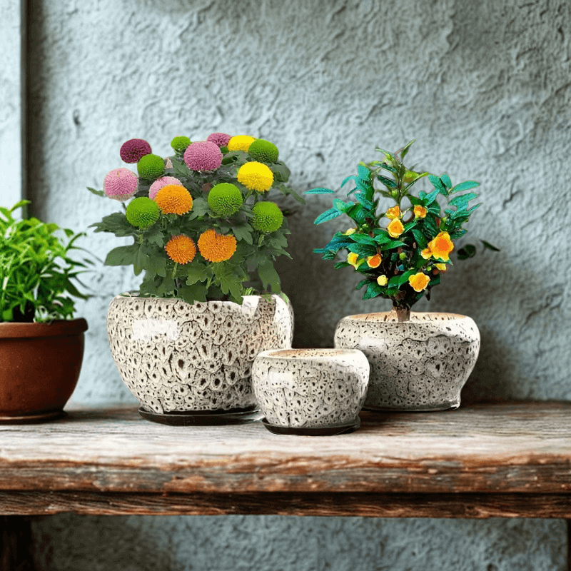 Boho kvetináčov v biela farbe 3 ks
