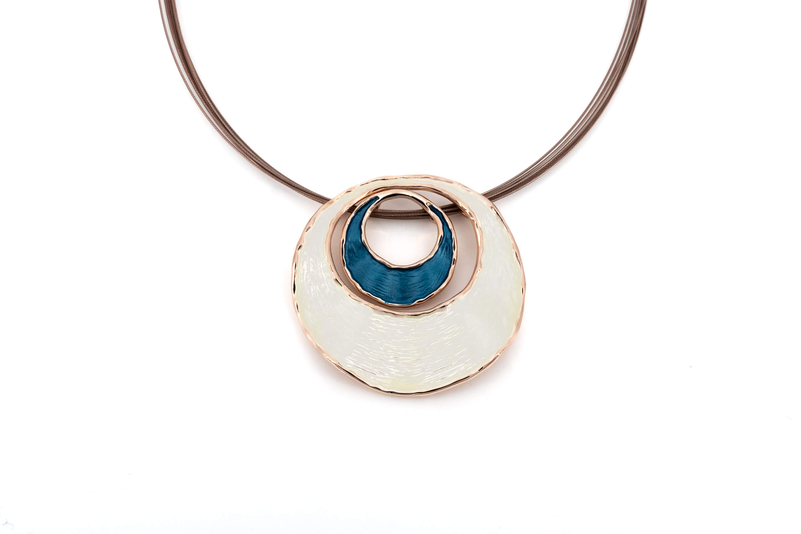 Ručne vyrábané šperky. Ručná práca, farebný smalt. Vďaka špeciálnemu, vysokokvalitnému materiálu a vzoru je jedinečný a nadčasový. Materiál: Zamak, ružové zlato s galvanickým povrchom. Zamak: Hliník, horčík, zliatina zinku