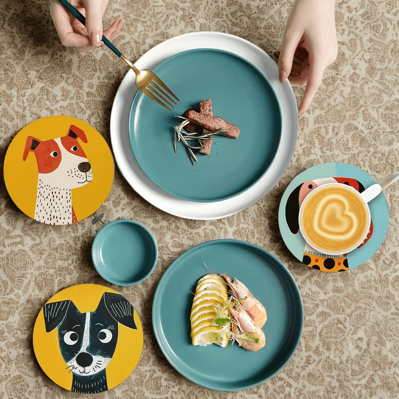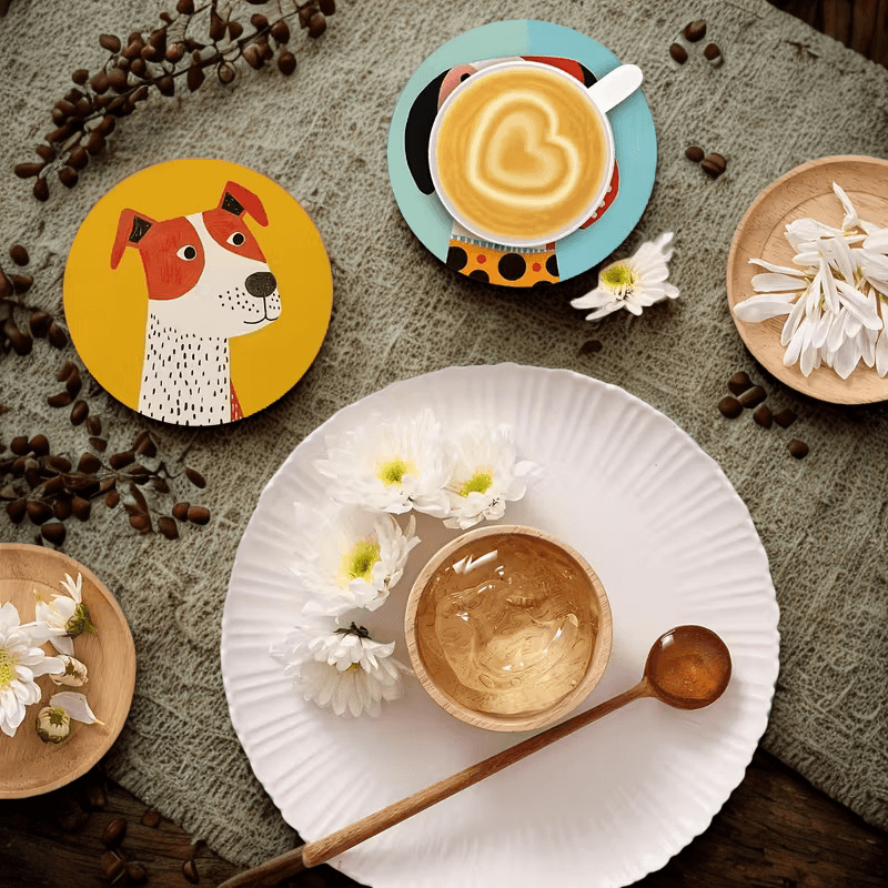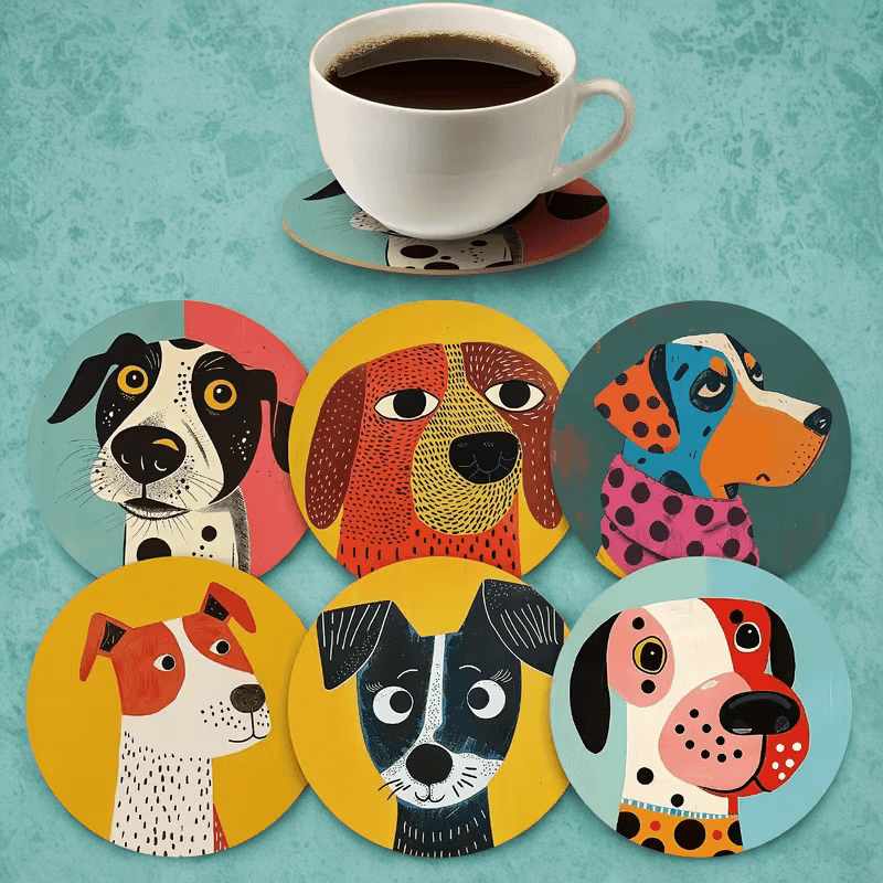 Moderné žiaruvzdorné podložky pod poháre 6 ks – psy