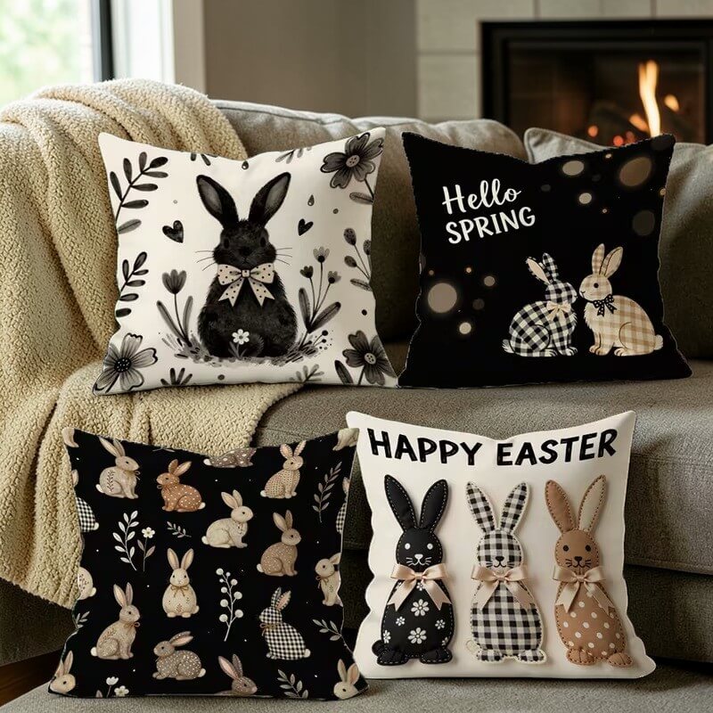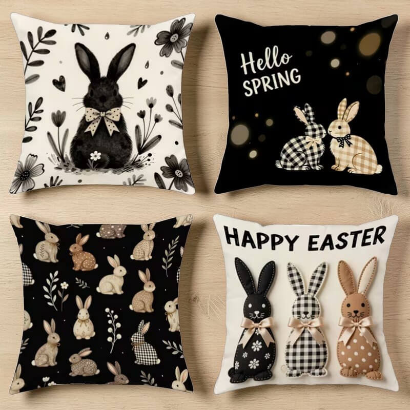 Sada 4 vintage obliečok na vankúše pre veľkonočné sviatky